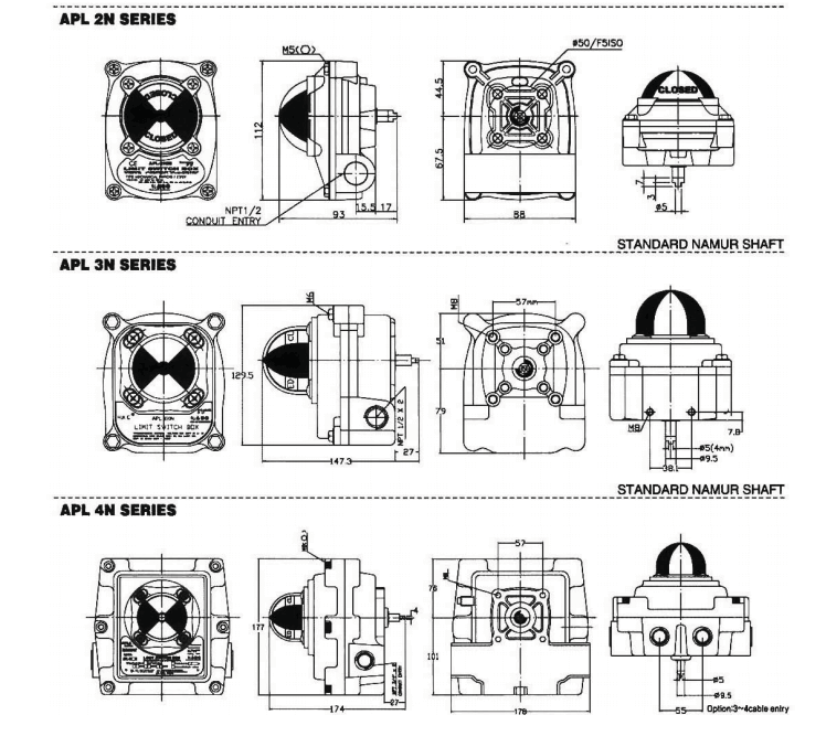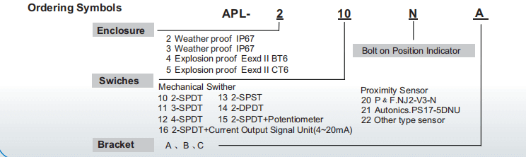 Caractéristiques des interrupteurs de fin de course de la série APL :