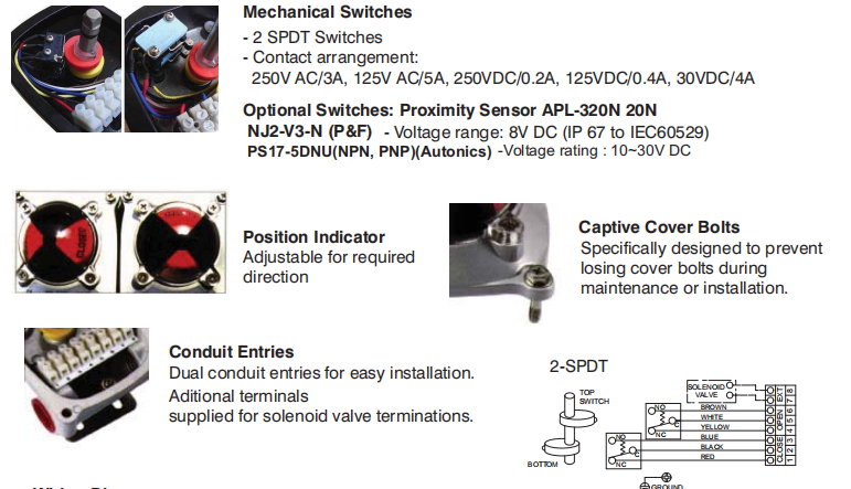 Caractéristiques des interrupteurs de fin de course de la série APL :