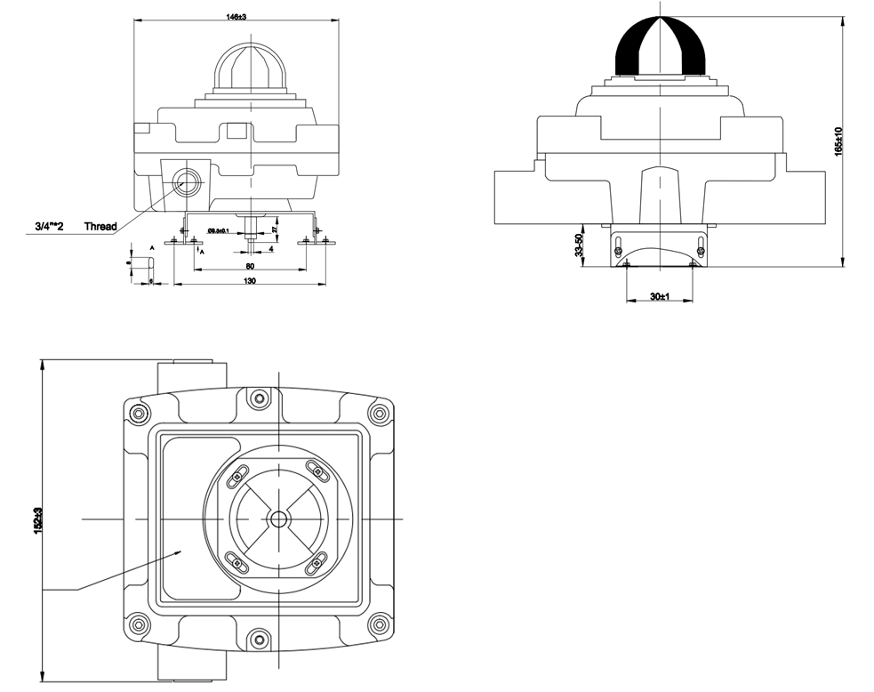 1. Boîtier en aluminium moulé sous pression de conception solide et compacte avec finition enduite de poudre de polyester ;