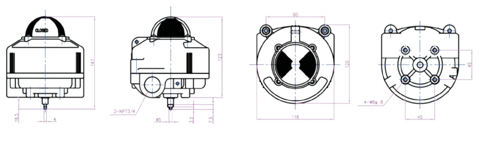 1. Boîtier en aluminium moulé sous pression de conception solide et compacte avec finition enduite de poudre de polyester ;