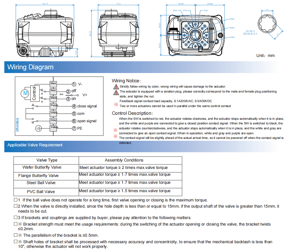 Ce petit actionneur électrique en matière plastique peut être utilisé pour actionner des vannes telles que des vannes à bille à 2 voies, à 3 voies et des vannes papillon.