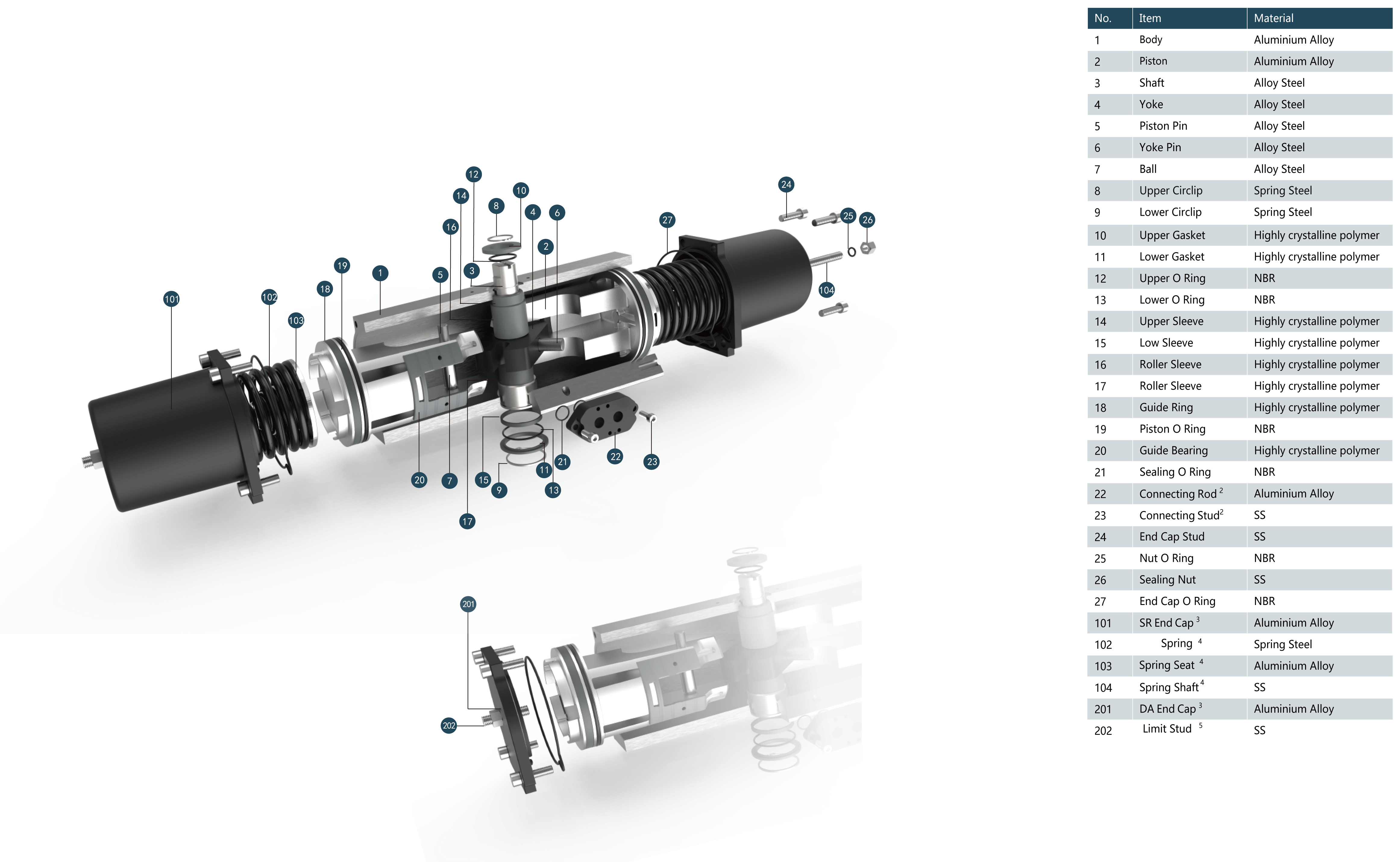 plus léger que les actionneurs pneumatiques à crémaillère, le volume peut être réduit de 30 %