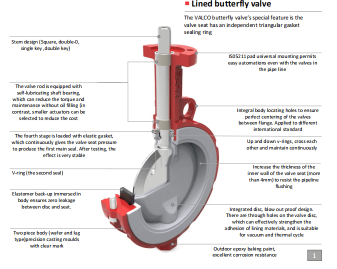 Le joint d'étanchéité de la vanne papillon VALCO se trouve sur l'arbre de la tige de vanne.